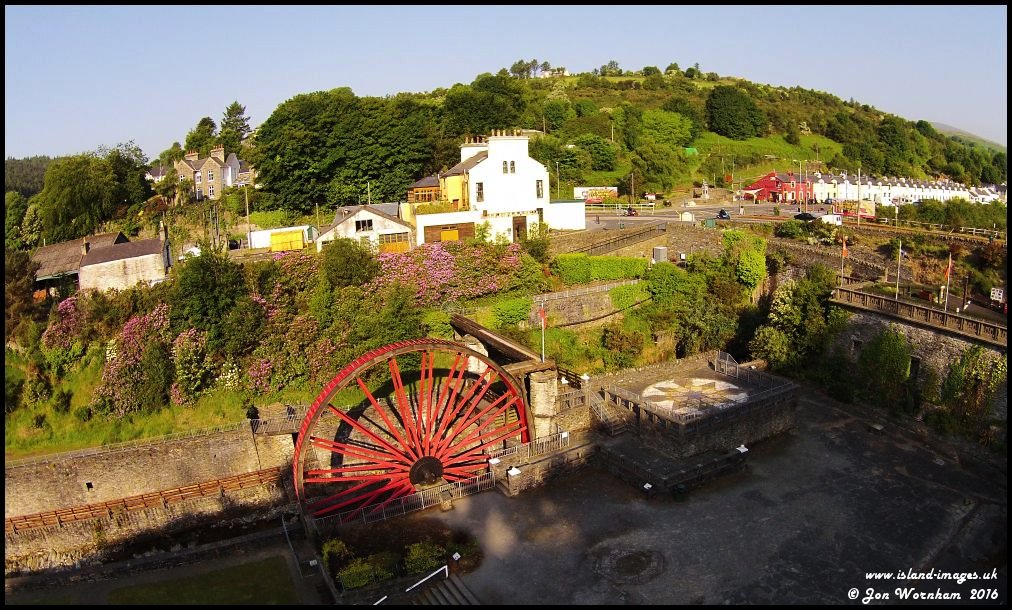 A side on view of the Lady Evelyn, the Snafell Wheel. When the washing floors here were in use there were several water wheels here to power the machinery
