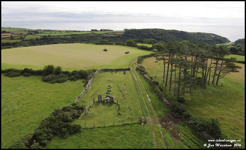 Cashtal yn Ard, looking east towards the sea, with the mountains of the English Lake District just visible on the horizon.