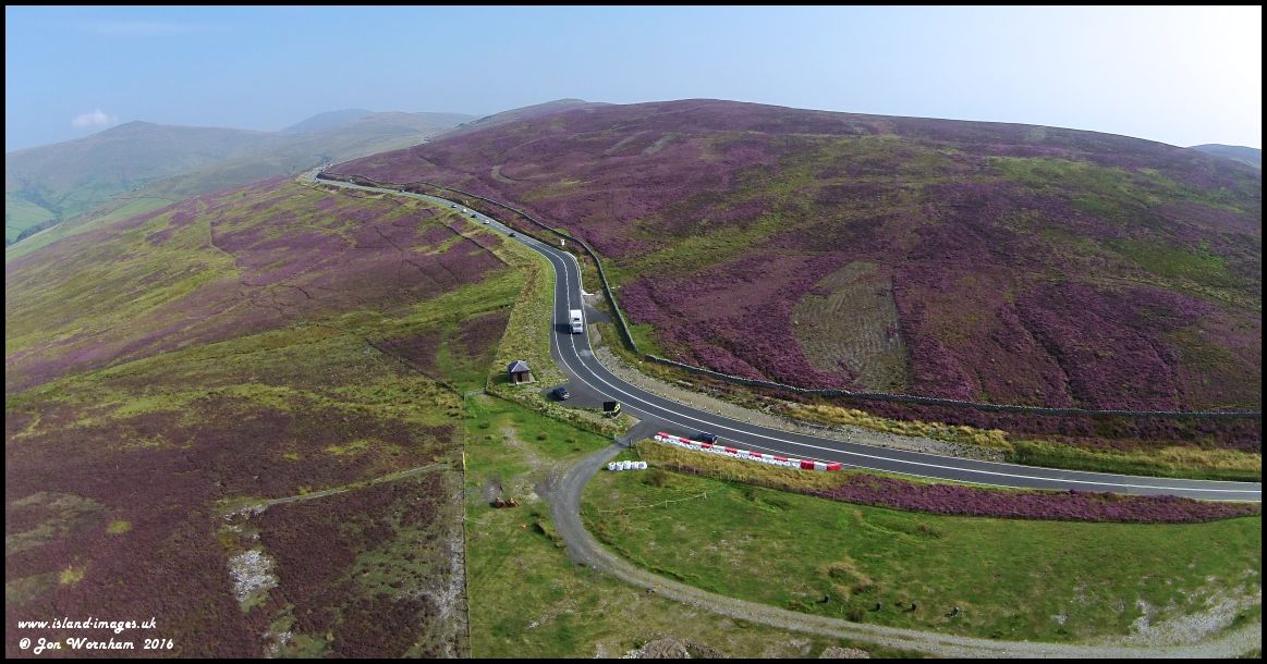 Heather covered hillsides either side of the Mountain Road at Keppel Gate