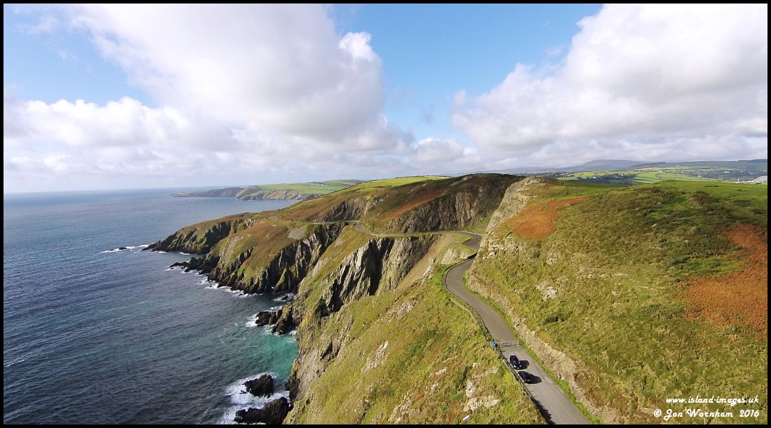 The Marine Drive at Port Wallberry. The road is closed to vehicular traffic in its centre section due to landslips on the seaward side, but can be walked or cycled along.