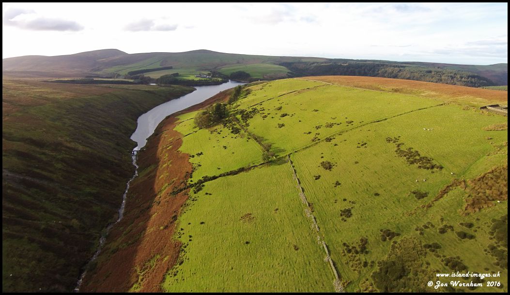 The astern of four 'legs' of the Sulby Reservoir, with a young Sulby River draining waters from