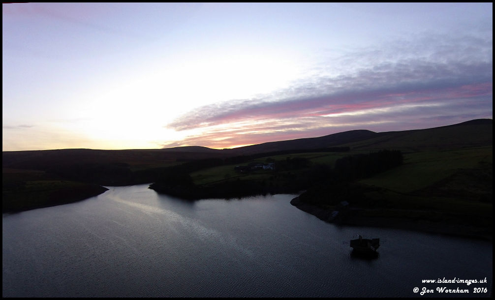 On the way back to landing - an aerial sunset over Sulby Reservoir