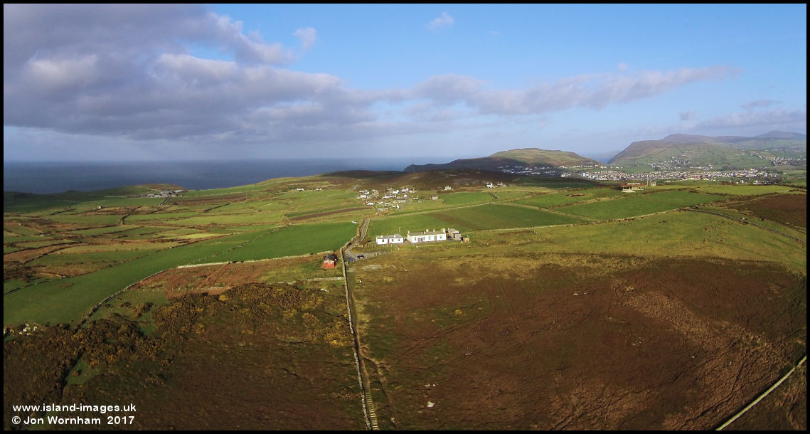 Cregneash and Port Erin. The buildings in the foreground were once coastguard cottages.