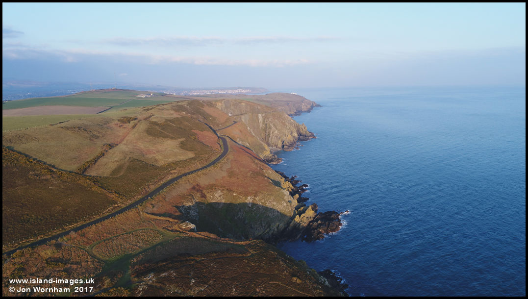 Going up a bit higher to around 350' showing the Marine Drive snaking around the clifftops. That's part of Onchan you can see in the distance