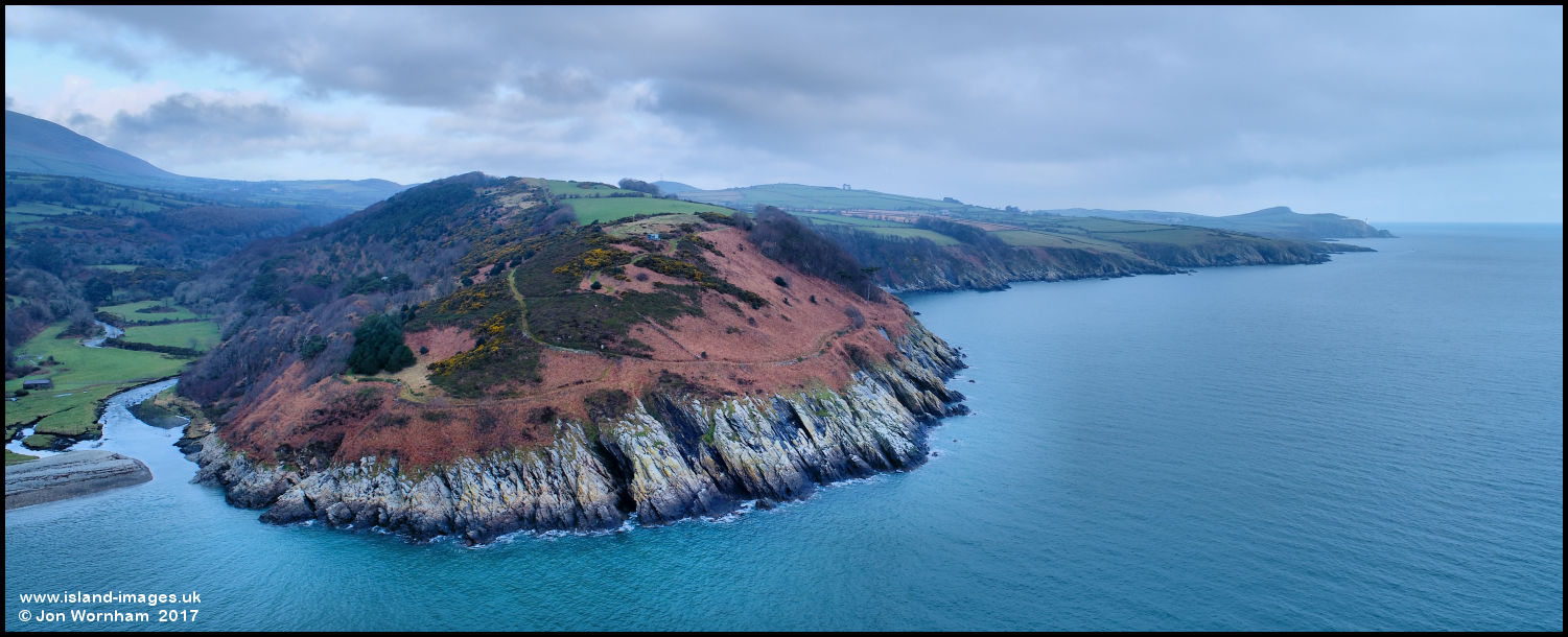 Port Cornaa, the northern headland and view along the coast to Maughold Head, in HDR