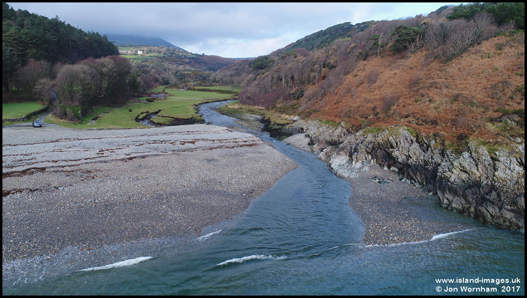 The Cornaa River flowing into the sea