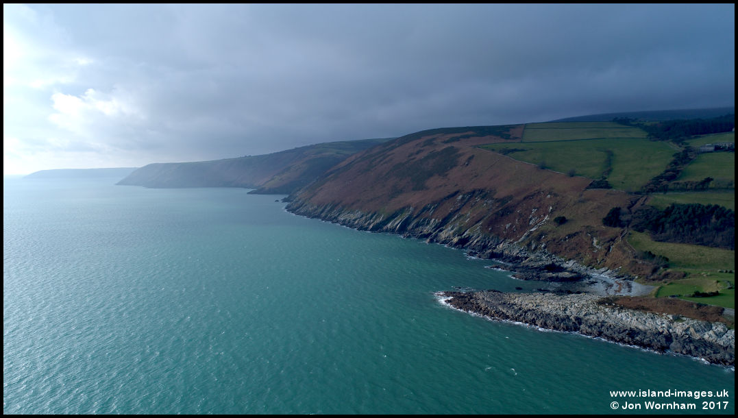Looking south from Port Cornaa with Clay Head in the distance and low clouds inland.