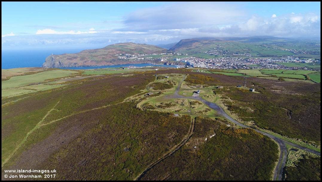 Mull Hill, with Port Erin and Bradda Head behind. The various concrete bases and remaining structures date from WW2 when there was a radar station here.