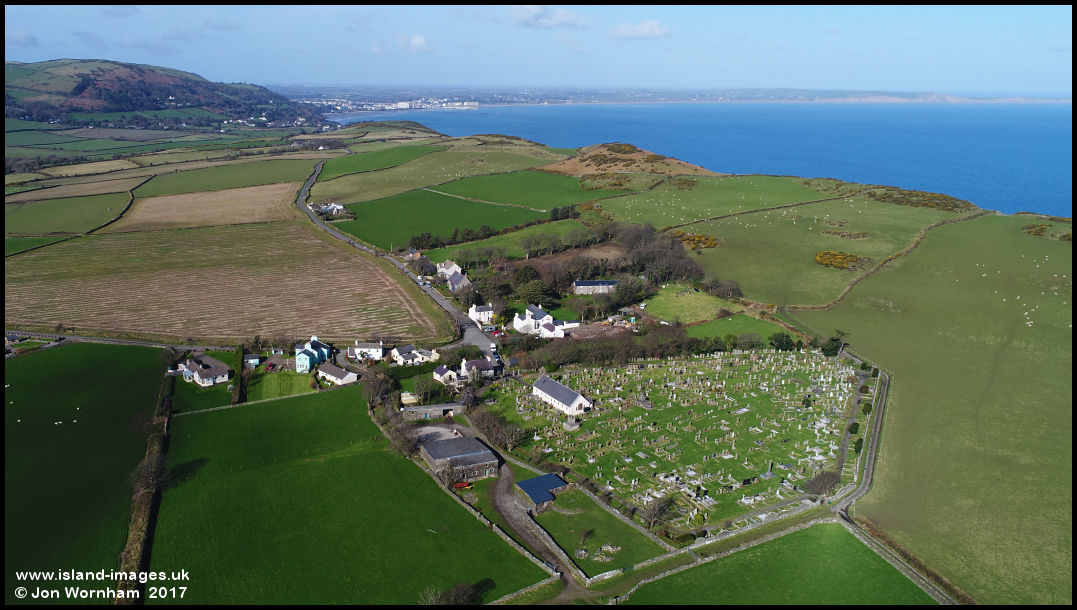 Looking across Maughold village towards Ramsey and the Bride Cliffs