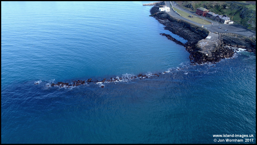 The remains of Governor Loch's breakwater, construction started in 1863 and used the first steam operated railway on the island. Not completed until 1876 but destroyed by a storm in 1881.