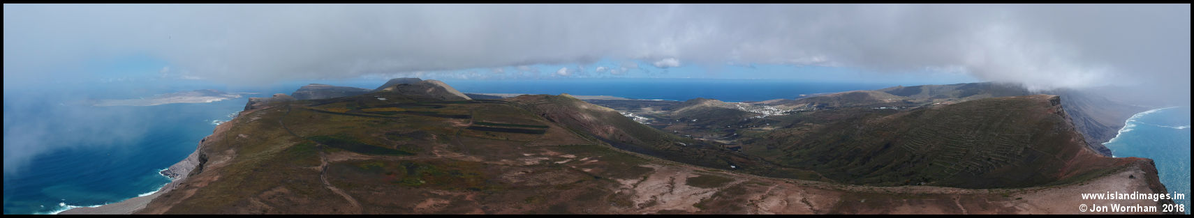 Panorama from the high ground west of Haria, slightly unusual in the you can see the same coast on both sides of the picture!