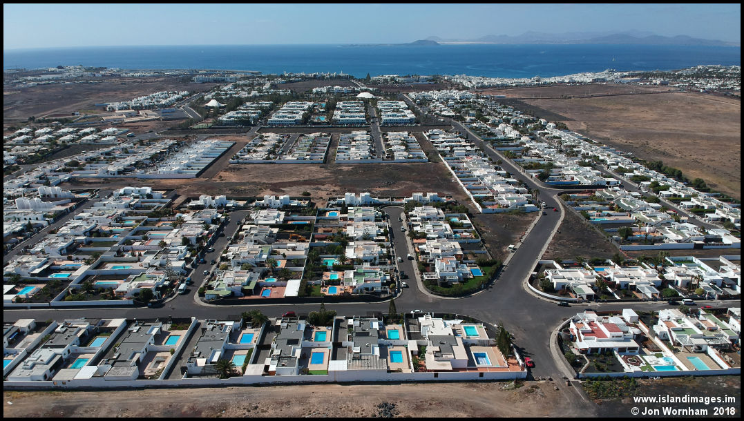 The Costa Papagayo area of Playa Blanca, looking south with Fuerterventura in the distance.