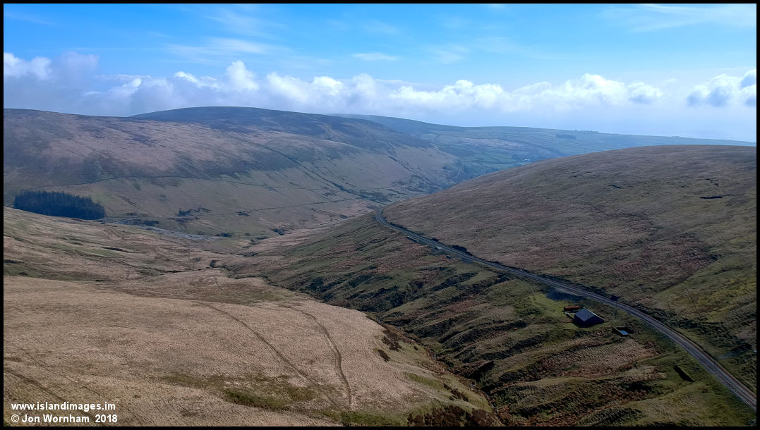 Looking along the line of the Sanefell Mountain Railway, as it descends into Laxey Glen.