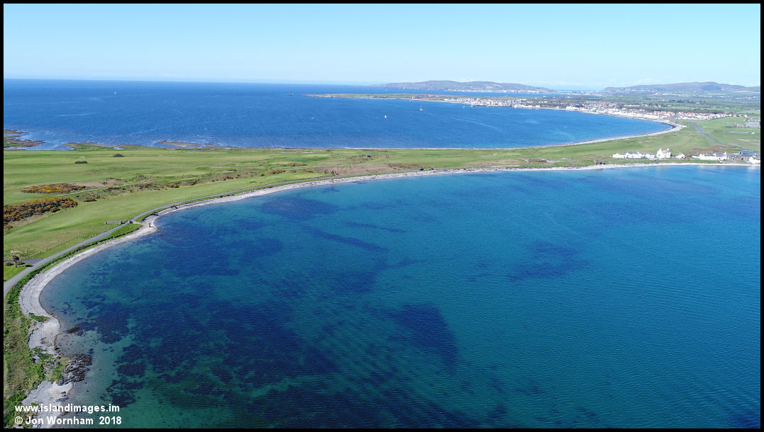 The clear waters of Derbyhaven bay at high tide.