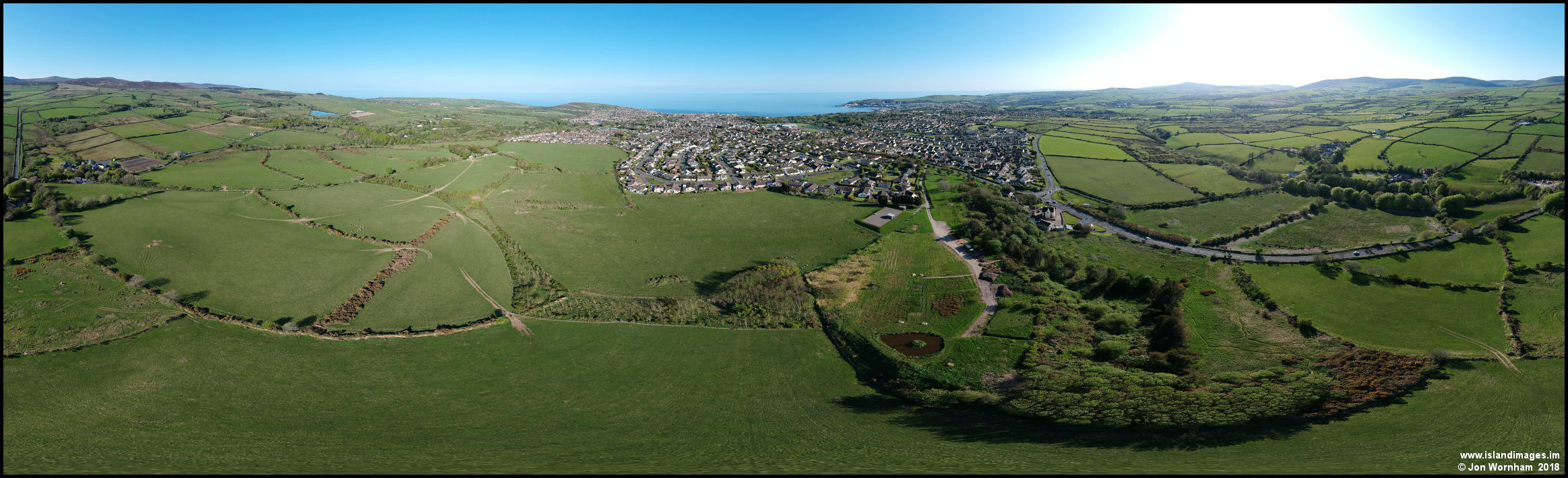 Panorama of the Cronk ny Mona area. The Mountain Road appears twice in this picture, on the left running up to Brandish and on the right Cronk ny Mona towards Hillberry! Click picture for a giant version and again to return.