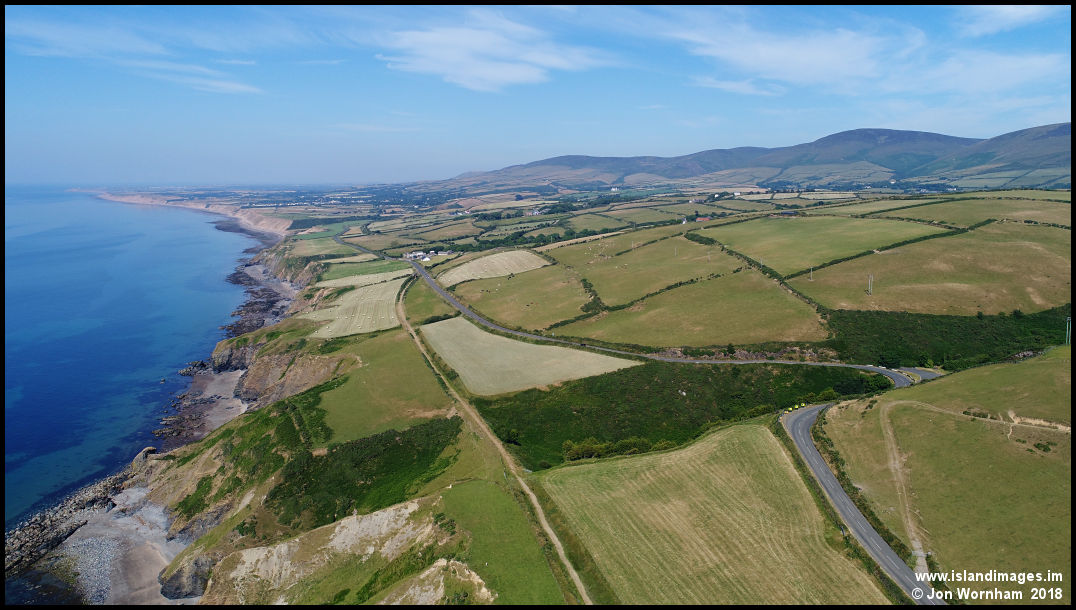 The Manx Northern Railway chose to cross Glion Cam using a high enbankment, visible in the lower centre of picture. The railway is long gone and can now be used as a footpath.