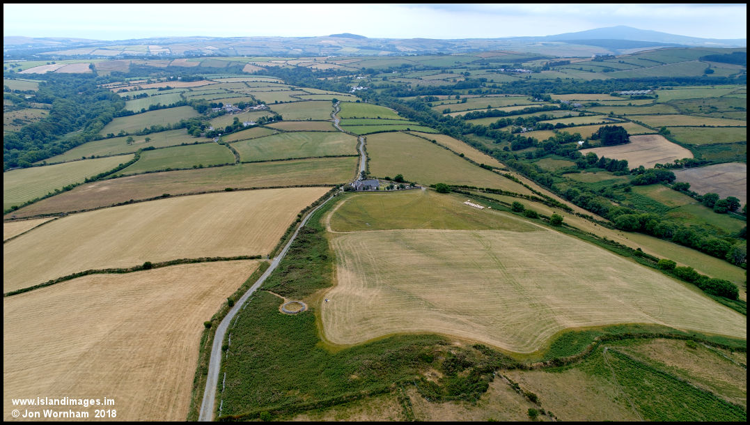 Looking to the south now past the ancient Tynwald site (marked by the more modern stone circle) and St Luke's Church.