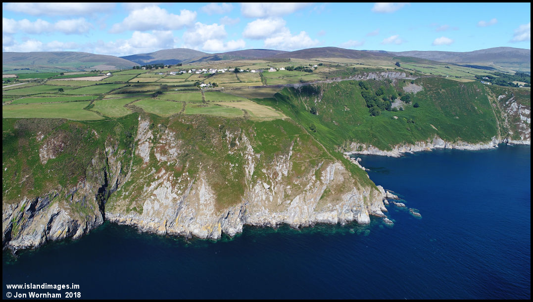 The headland to the south of Bulgham Bay, with Ballaragh village on the hillside behind.