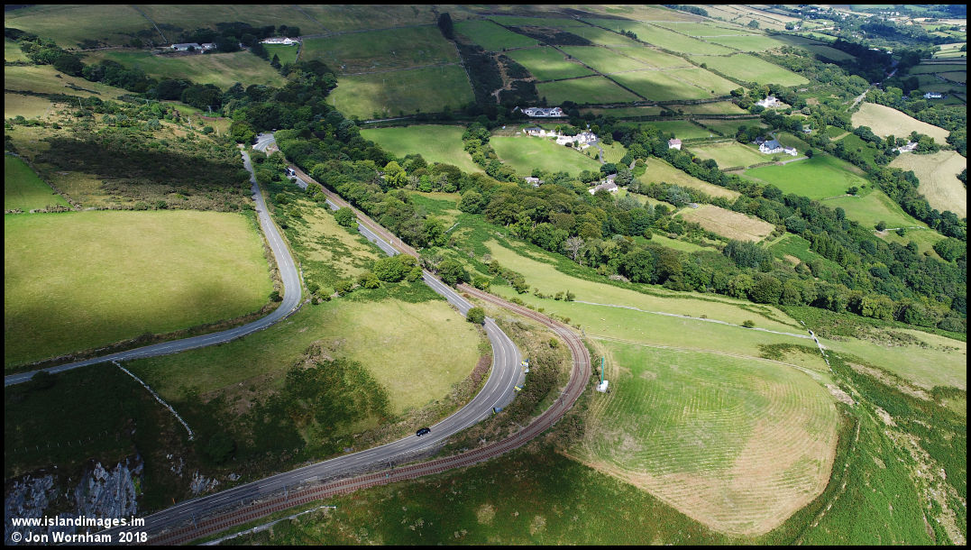 Where two roads and the railway curve around the countours above the Dhoon Glen.