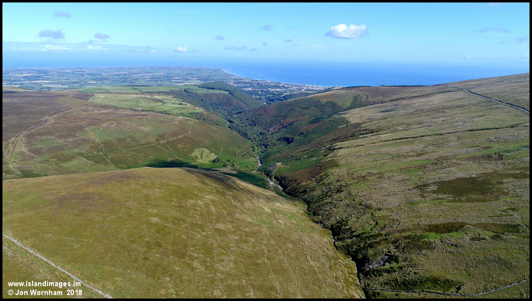 Looking north along Glen Auldyn with Ramsey in the distance.