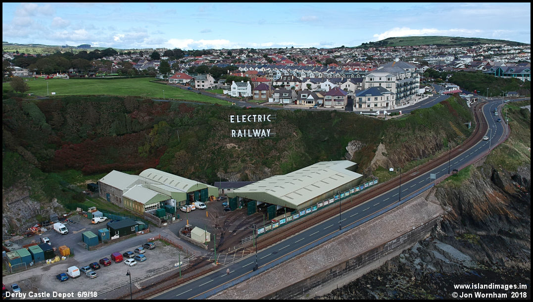An aerial view of the Manx Electric Railway Derby Castle depot. Unfortunately, with an intensive service operating today, there are no tramcars in the yard!