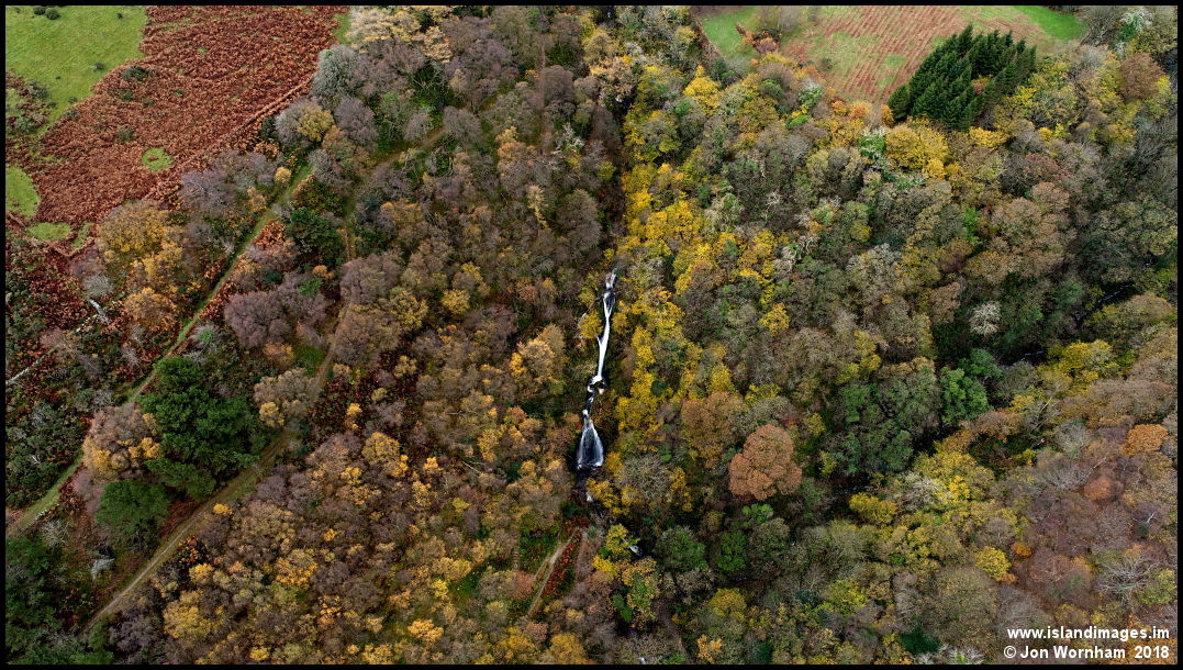 Autumn colours surround the impressive waterfall in Dhoon Glen.