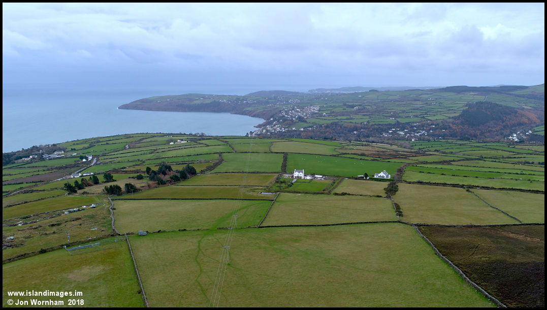 Cottages on the outskirts of Ballaragh, with Laxey and Clay Head behind.