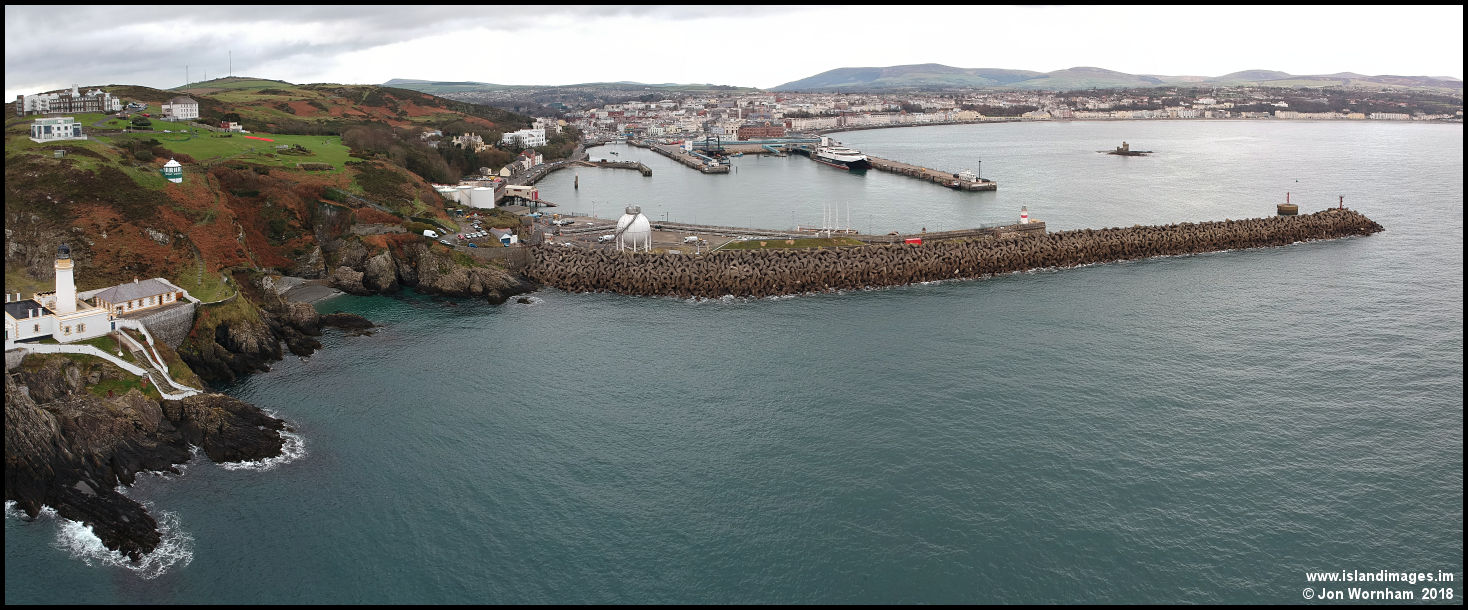 Panorama of the Battery Pier breakwater and Douglas Harbour.