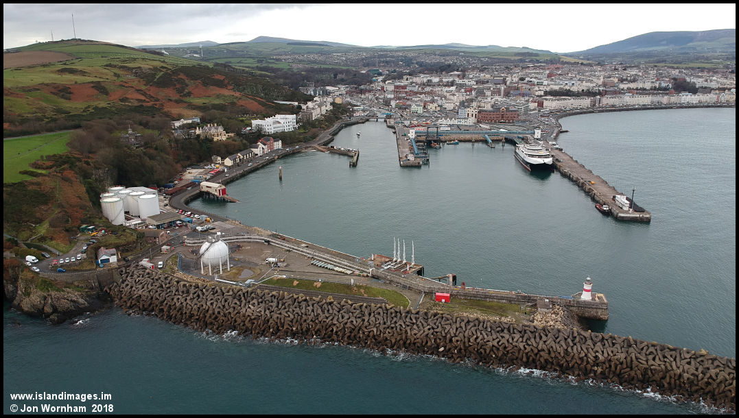 Douglas harbour, with 'Manannan' on her winter season lay-up there.