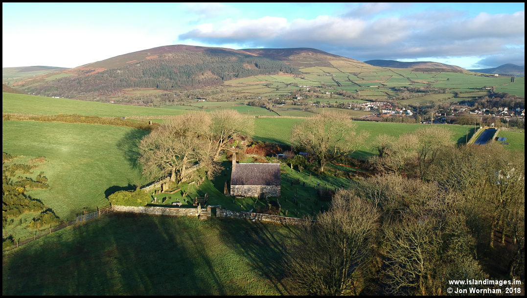 Marown Old Church, looking across the central valley to Greeba.