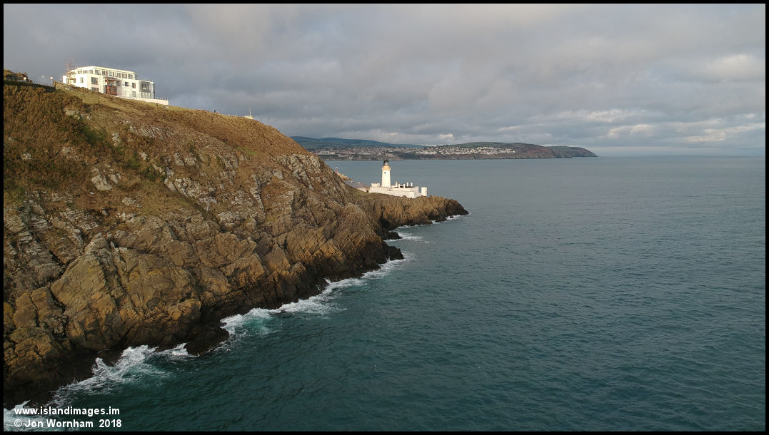 Flying down to a level below the Marine Drive for a view of Douglas Head Lighthouse.