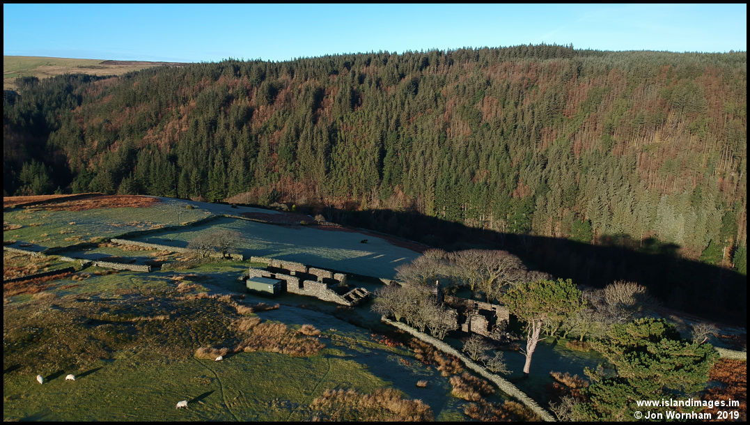 The Creggans, with the crumbling farmhouse in the trees to the right.