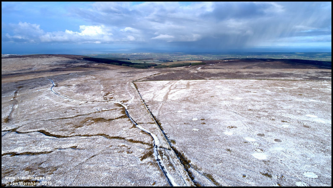 Some sunshine on the snow covering the moorland to the west of Mountain Box.