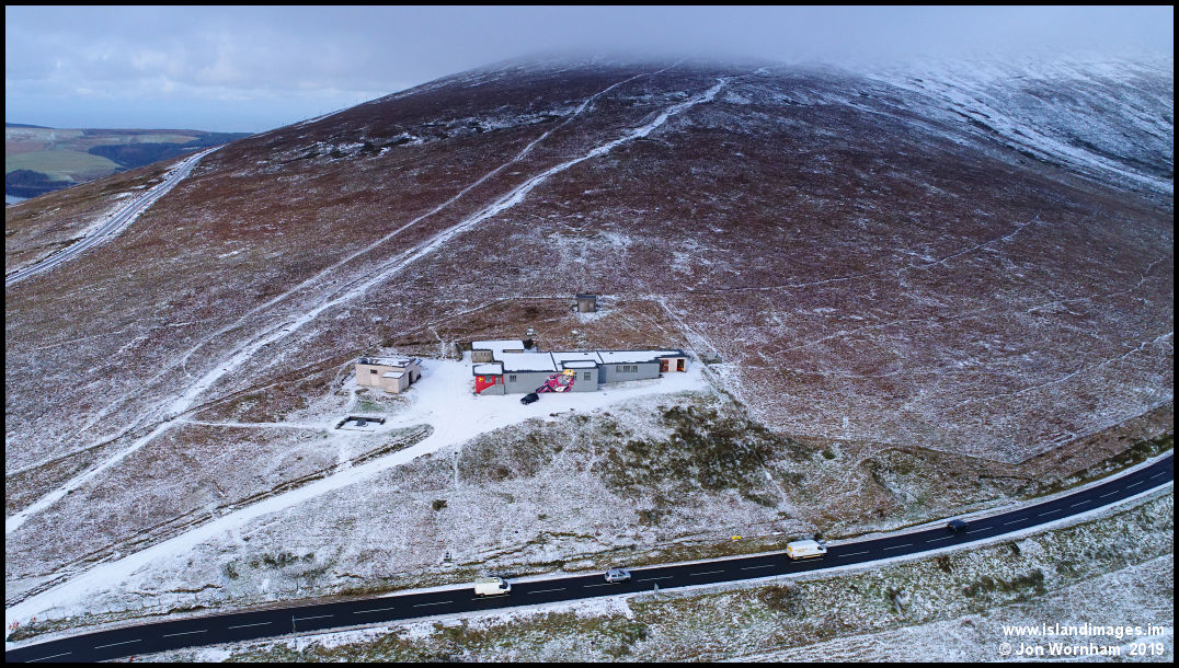 The former Cold War 'Rotor' radar station at Bungalow on the lower slopes of Snaefell, latterly used as a motorcycle museum but currently unoccupied.