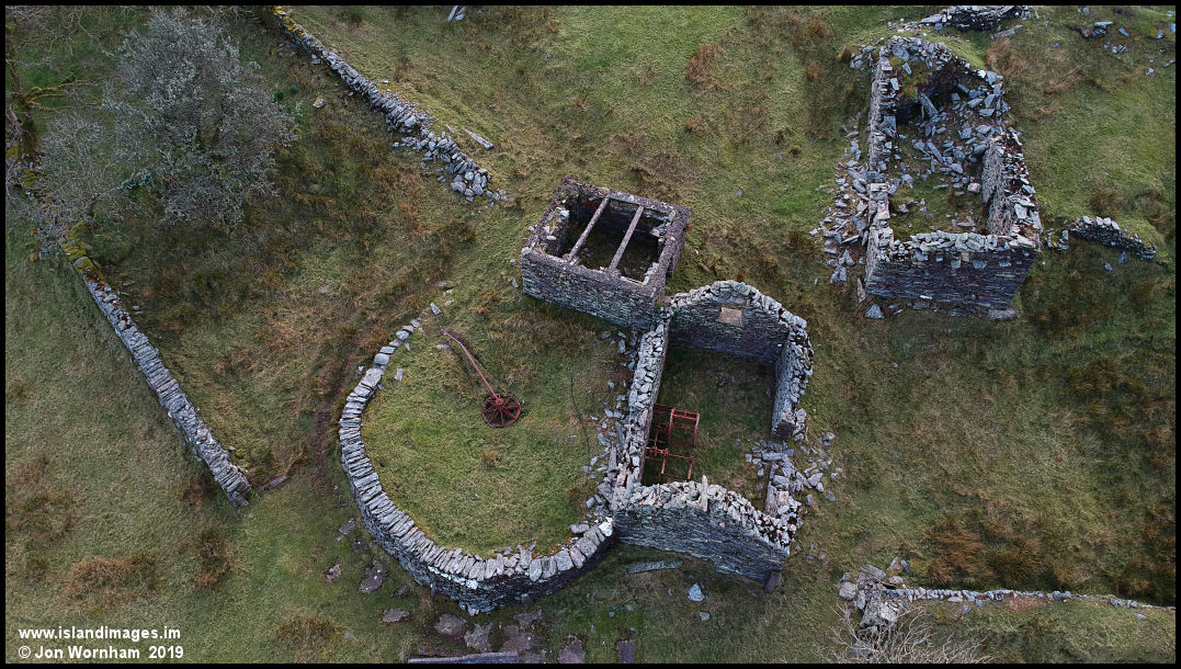A vertical view showing the area the horse would walk around, turning the wheel in the centre, which powered the mill in the adjoining barn.