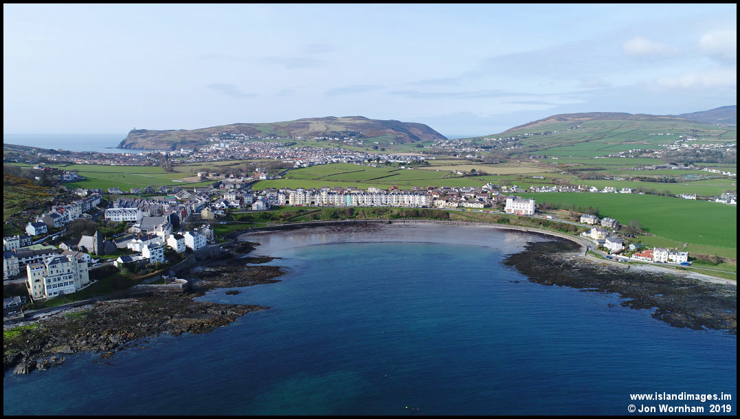 Looking over Chapel Beach, Port St Mary, with Port Erin and Bradda Head in the distance.