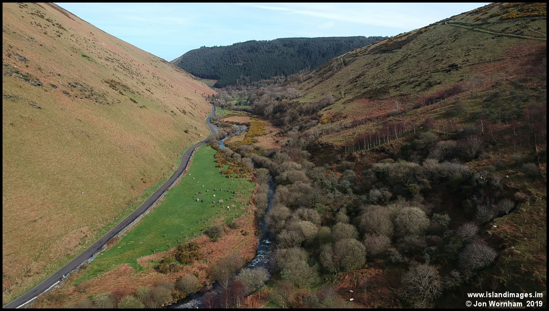 Flying further downsteam to where the glen wides out a little and somebody has constructed a modern day stone circle.