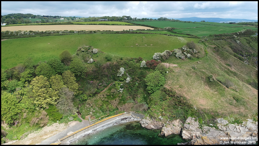 A steep footpath ascends here from the beach to the Marine Drive, but at one time there was an alternative in the form of a funicular railway, linking up with the Douglas Southern Electric Tramway to Douglas Head.
