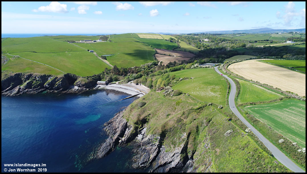 Port Soderick from the north along the Marine Drive. The terminus of the Douglas Southern Electric Tramway was at the lower right of the picture, passengers could then follow the footpath to the funicular down to beach level.