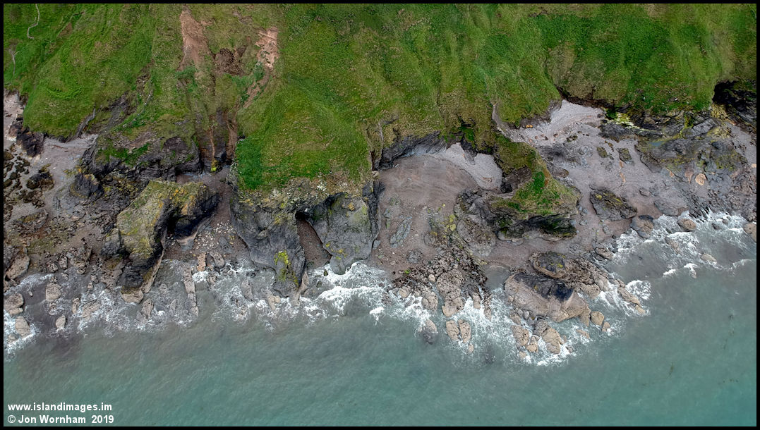 A vertical view of the rocks and little headlands at the south end of Lhiannag.