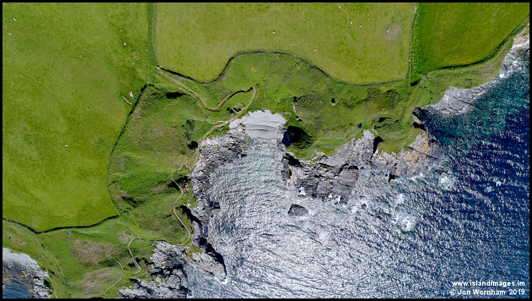Looking vertically down on the little beach from where the Maughold villagers would once have launched their fishing boatds.