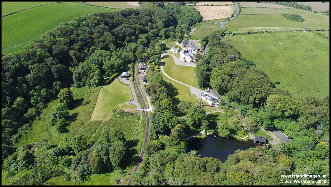 Looking across the lake to Crogga House. The Crogga Valley Railway winds around the lake to the other terminus, which is out of sight in the trees at the bottom of the picture.