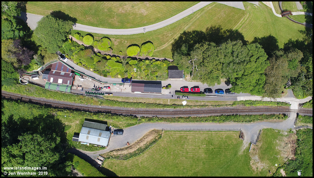 An almost vertiacl view of the Crogga Heights terminus with two trains ready for passengers.