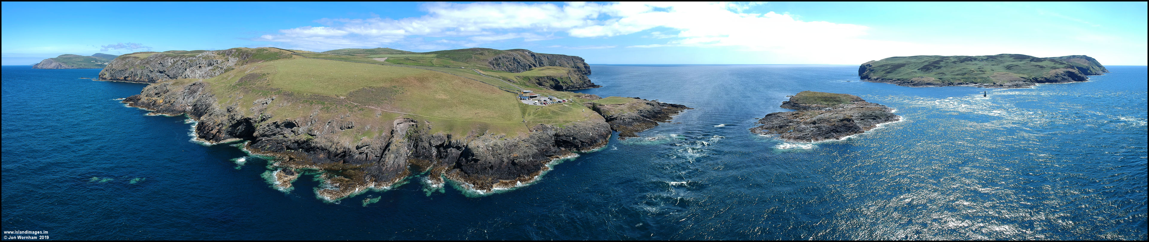Panorama of the Calf Sound from the west, with Bradda Head on the left of the picture and the Calf of Man on the right.