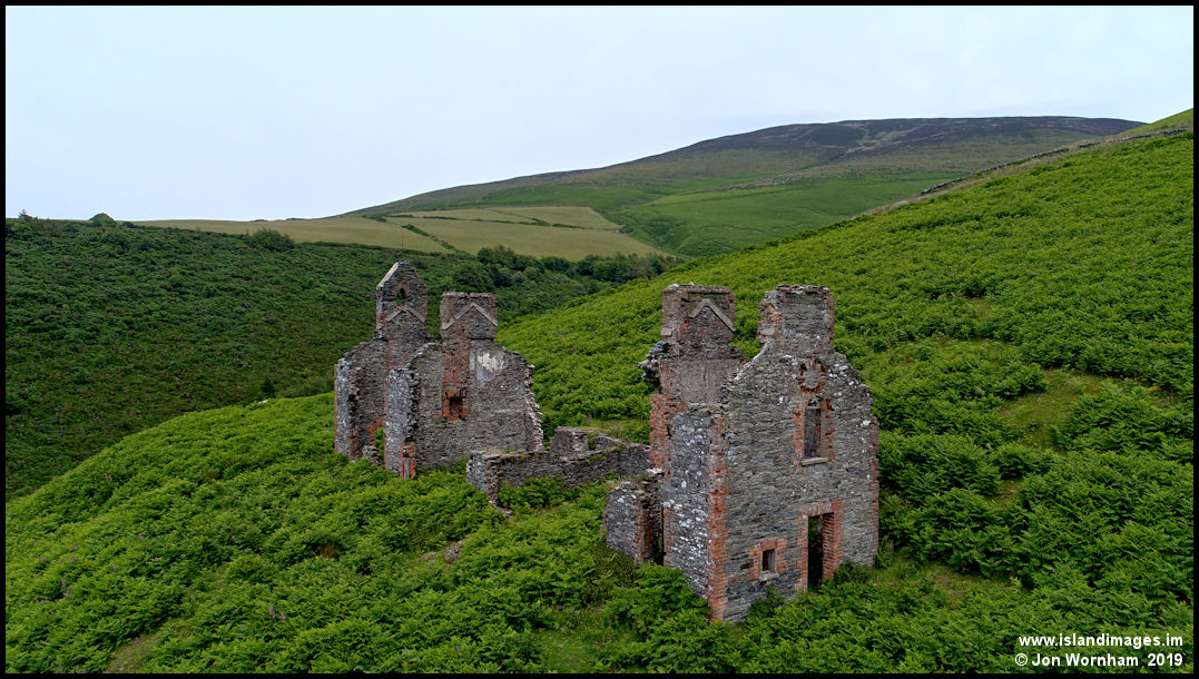 The building from the other end. There is a circular pattern in the brick on the gable end, possible for a large works clock?