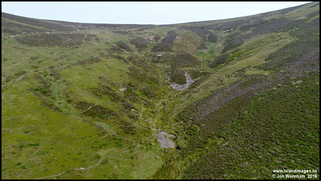 Flying the drone down the valley a bit revealed evidence of workings at several levels below the main building.