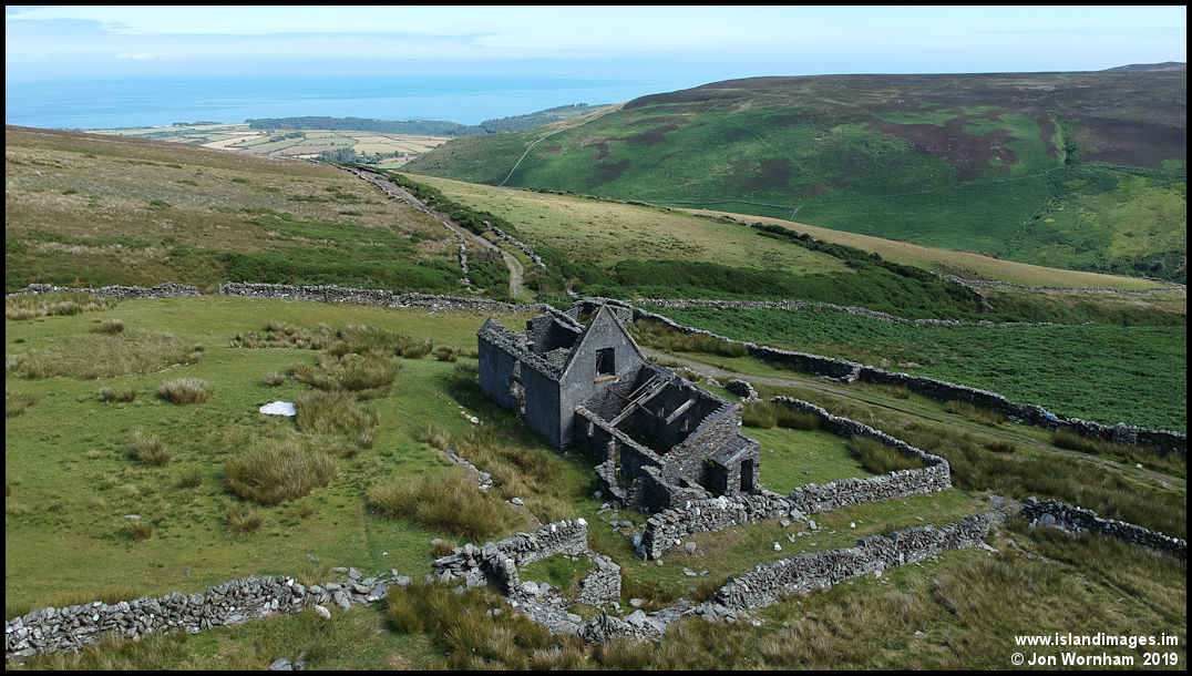 The tholtan of Park Lewellyn. Time to show you a panorama of the area before packing the Spark away again and walking onwards to the remains of the North Laxey Mine, further up the valley.