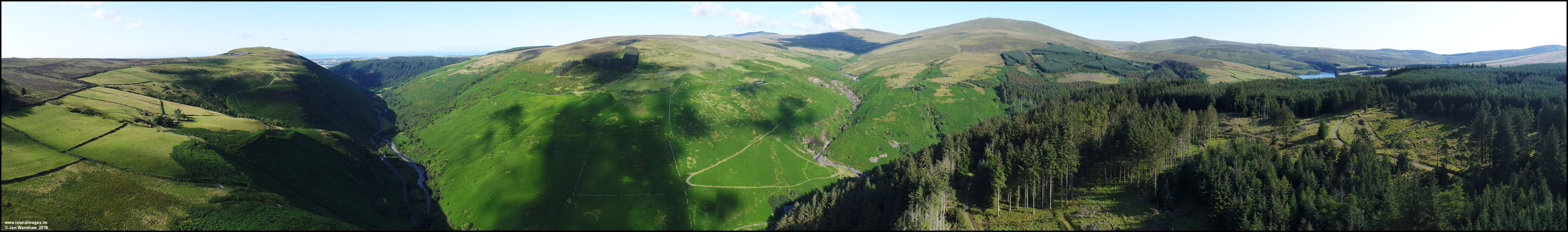 Panorama over Sulby Glen from Mount Karrin to Sulby Reservoir.