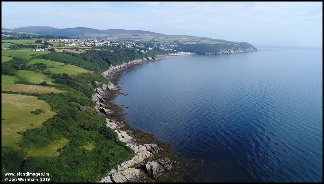 Looking to the north along the coast from Garwick to the village of Laxey.