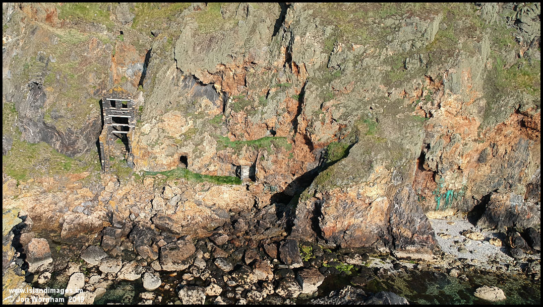 The large building was the engine house for operating the mine pumps, with various adits also visible into the cliff face.